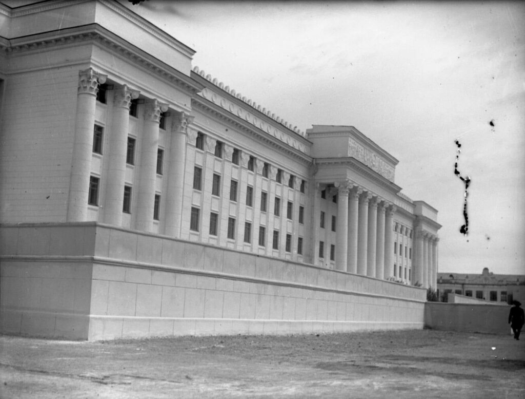 Ордны барилгын суурийн ажил 1947 оны 4 дүгээр сард эхэлжээ. Уул барилгын ажлыг ордны барилгын дарга Лэгцэгийн Гончиг /ахлах дэслэгч/ Улсын барилгын Хэрэг эрхлэх ерөнхий газрын нэгдүгээр орлогч хурандаа Д.Гончиг, мөн газрын орлогч Д.Жанцансамбуу, Улсын төлөвлөгөөний комиссын барилгын хэлтсийн дарга Ж.Агваанлувсан, зөвлөлтийн мэргэжилтэн Порпинов нар барилгын ажил эхлэхээс ашиглалтад ортол хариуцан гүйцэтгэжээ. Ордны барилгын баруун хэсгийн суурийн ажлыг японы олзлогдсон 300 цэрэг гүйцэтгэж 1947 оны 10 дугаар сард нутаг буцжээ.